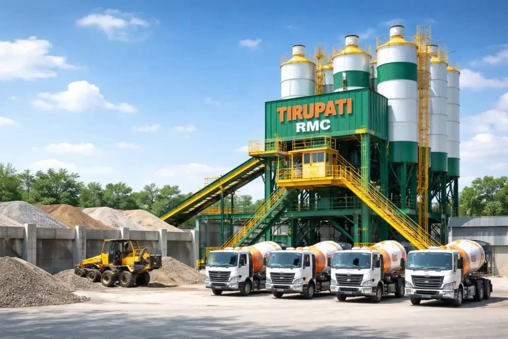 Tirupati RMC operates multiple batching plant units categorised into commercial supply operations and dedicated project-based supply systems. Our commercial plant infrastructure is designed to fulfil bulk ready mix concrete requirements for residential, commercial and infrastructure developments with consistent production capacity and strict quality monitoring.
